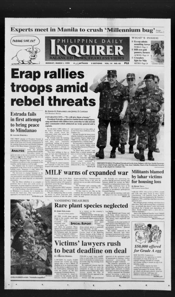 March 1, 1999: Erap rallies troops amid rebel threats by Philippine Daily Inquirer March 1, 2025 0 Comments