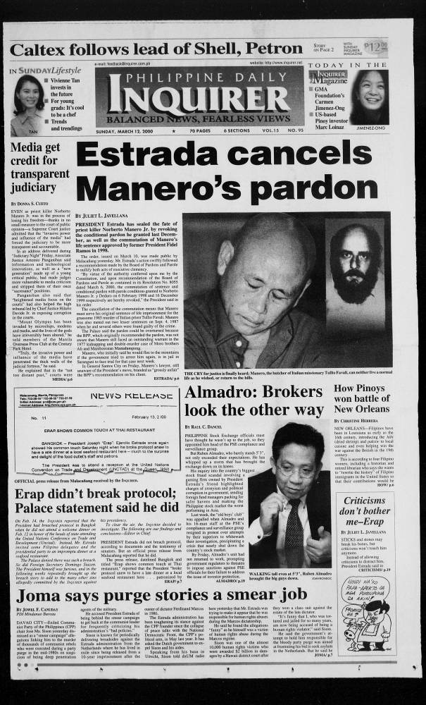 March 12, 2000: Estrada cancels Manero’s pardon by Philippine Daily Inquirer March 12, 2024 March 12, 2000. 0 Comments