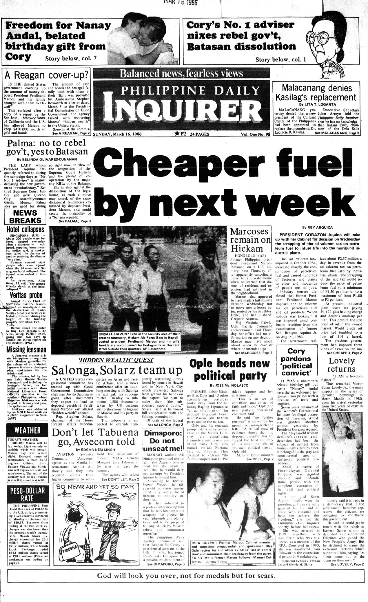 March 16, 1986: Cheaper fuel by next week