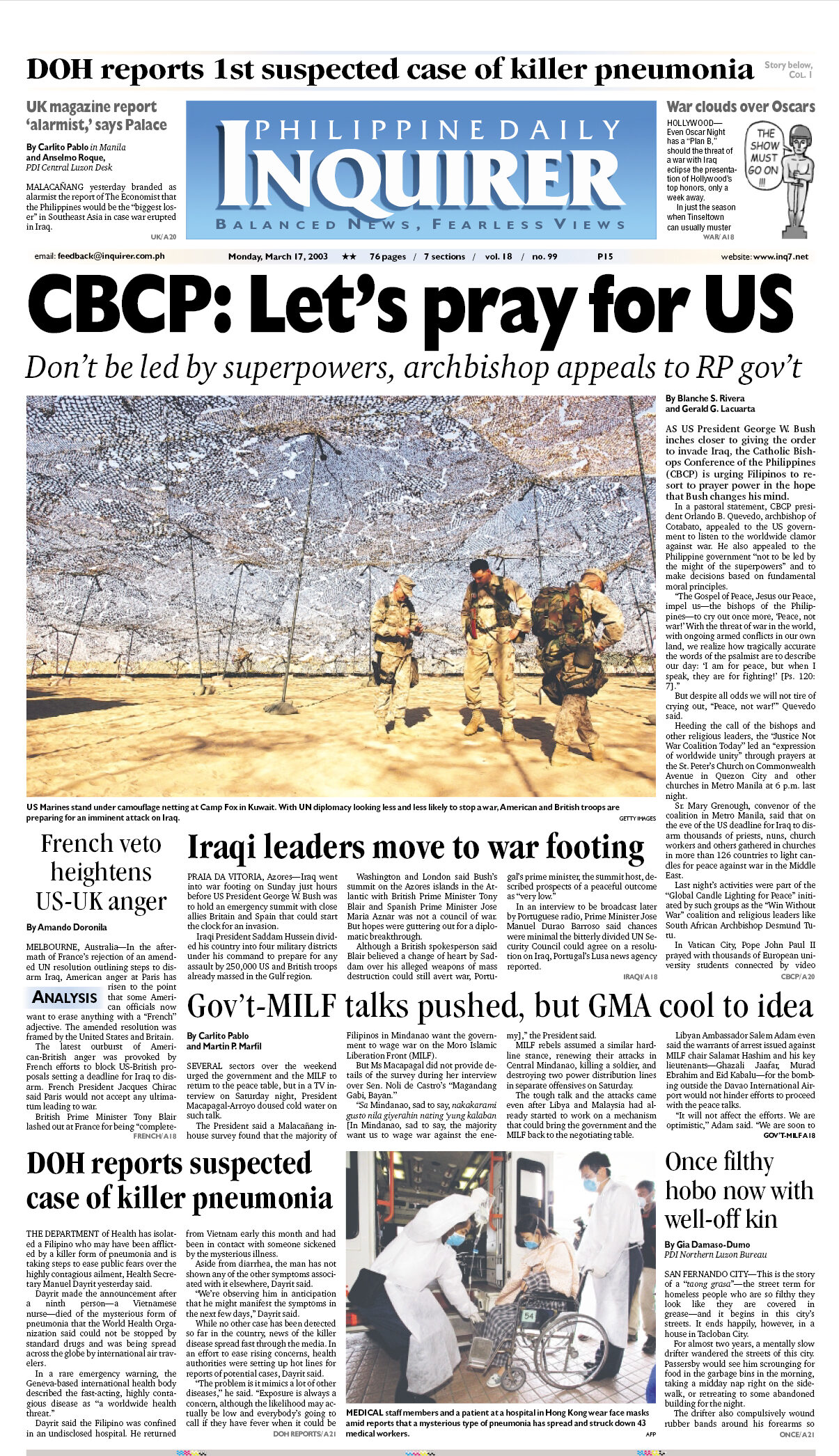 March 17, 2003: CBCP: Let’s pray for US