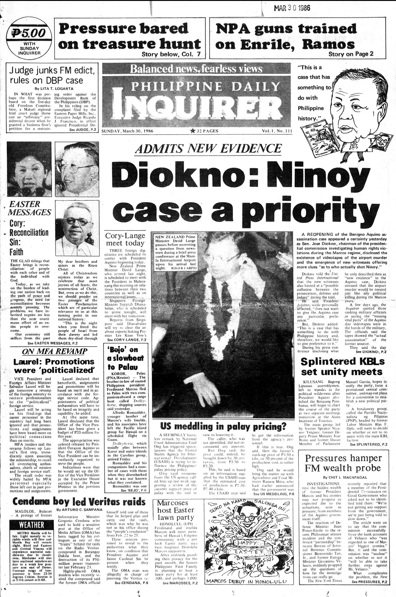 March 30, 1986: Diokno: Ninoy case a priority