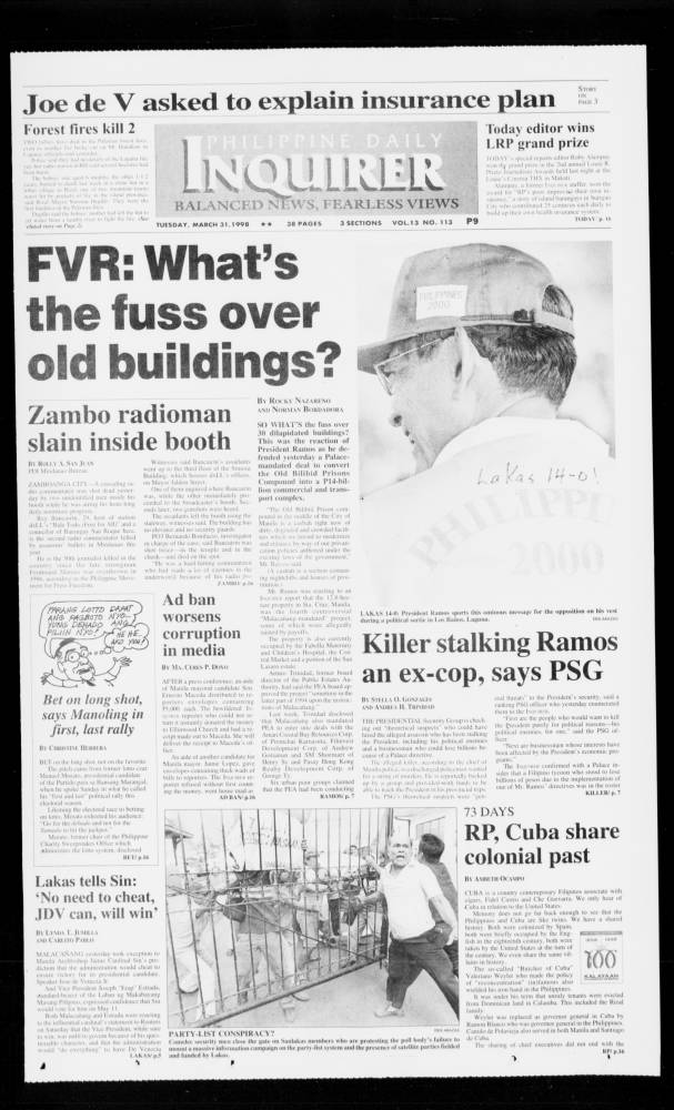 March 31, 1998: FVR: What’s the fuss over buildings by Philippine Daily Inquirer March 31, 2024 March 31, 1998. 0 Comments