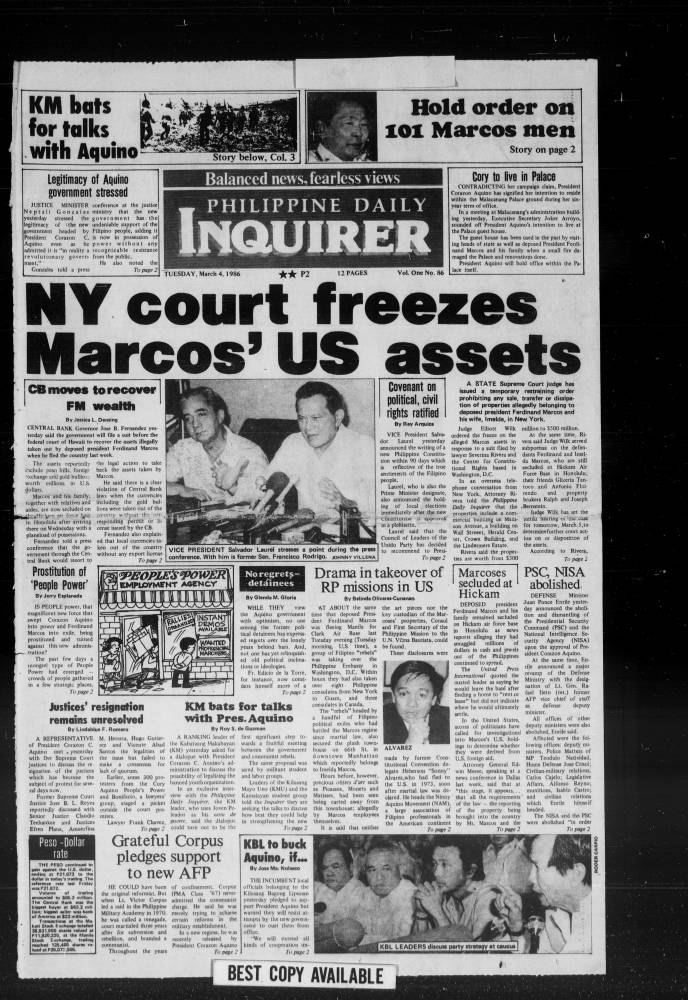 March 4, 1986: NY court freezes Marcos’ US assets by Philippine Daily Inquirer March 4, 2025 0 Comments