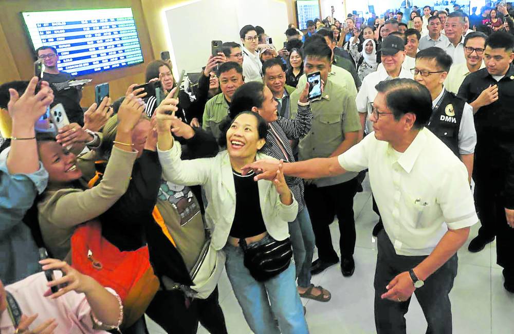 FROM MRT TO NAIA President Marcos continues his inspection of transportation facilities, visiting Terminal 3 of Ninoy Aquino International Airport (Naia) on Tuesday. Surprised overseas Filipino workers at the airport sought a photo op with the President. On Sunday, he and the first family went around Metro Manila by train. —NIÑO JESUS ORBETA