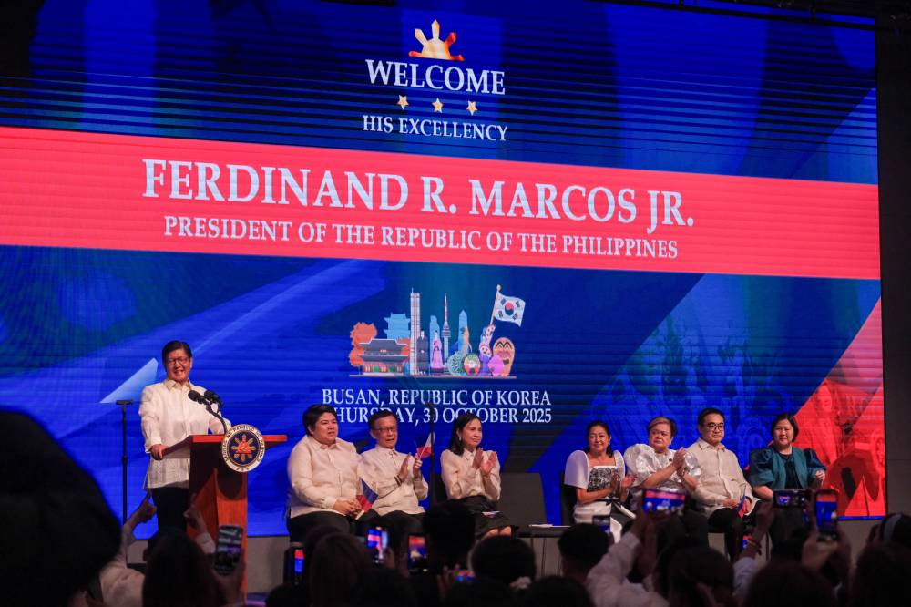 The presidential plane carrying Marcos and his delegation landed at Gimhae International Airport in Busan, at 5 p.m. Mr. Marcos proceeded to a meeting with the Filipino community before joining Apec-related events on Friday.