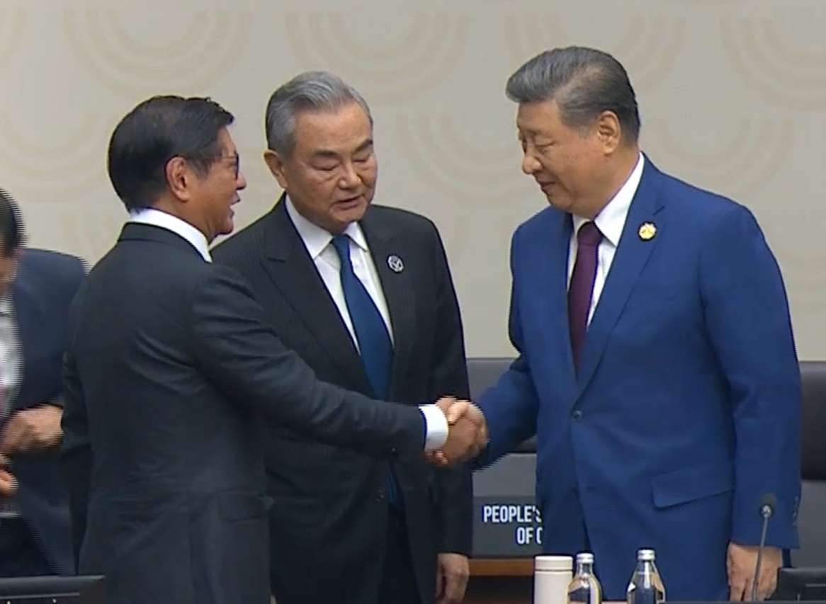 Xi and Chinese Foreign Minister Wang Yi both looked a bit surprised, as Xi stood up when Mr. Marcos extended a hand. Wang, who was seated at the back of Xi, approached them and acted as translator.