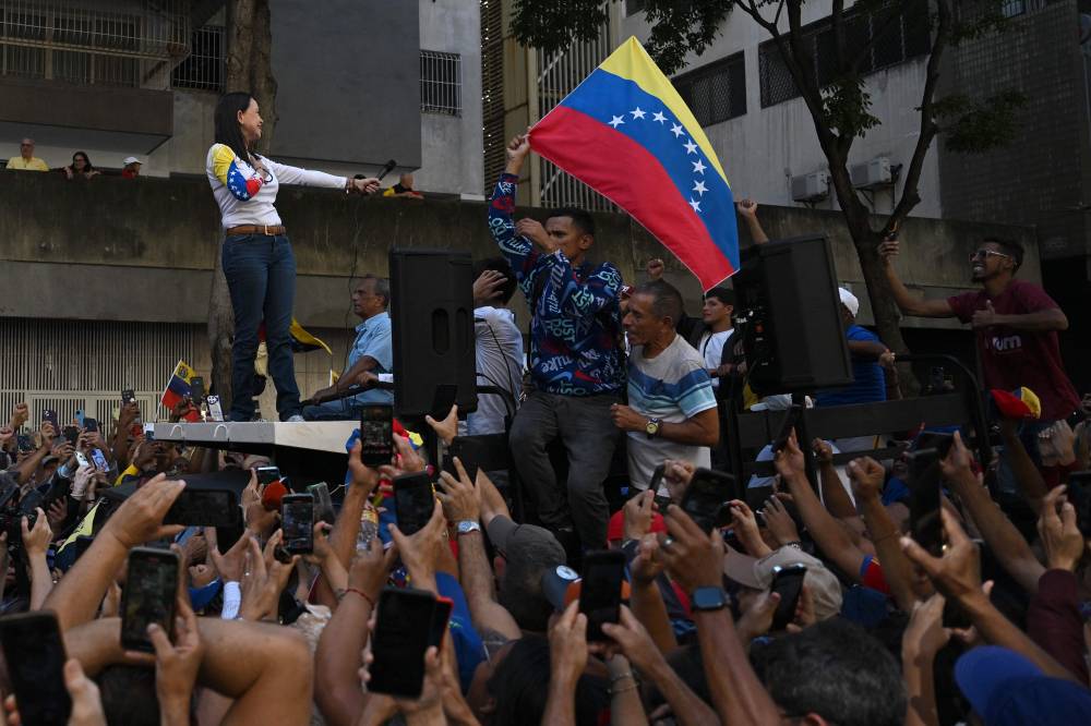 Barred from running, Machado was also banned from flying and crisscrossed the country by road to campaign for Gonzalez Urrutia with rousing speeches enthusiastically received.
