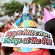 The participants came in white and green shirts, holding Philippine flags, green ribbons, balloons and streamers with birthday greetings.
