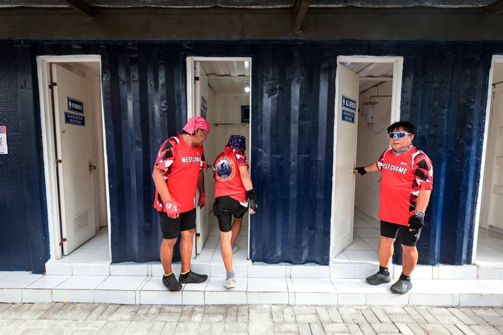 REFRESHING STOPOVER Cyclists check out the shower rooms that the Metropolitan Manila Development Authority inaugurated on Tuesday in the agency’s Motorcycle Riding Academy at the corner of Meralco and Julia Vargas avenues in Pasig City. The facilities are free to use for bikers going to work and who wish to freshen up before arriving at their offices. —PHOTOS BY GRIG C. MONTEGRANDE