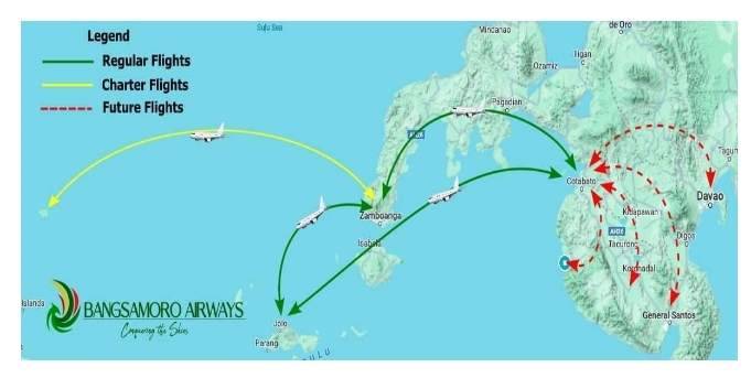Mohammad Pasigan, chair of Bangsamoro Board of Investments (BBOI), said in a statement that the Bangsamoro Airways, operated by Maguindanao del Norte-based Federal Airways Inc., will start servicing the flight between Sulu and Zamboanga three times a week even as it also opens the Sulu to Cotabato route and vice versa; and Cotabato to Zamboanga City route and vice versa.