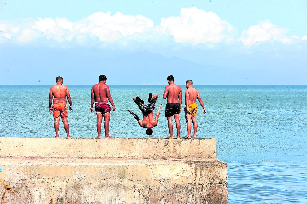 Residents in Noveleta, Cavite, prepare to take a plunge at Manila Bay to cool themselves, amid Black Saturday’s heat index of 41 degrees Celsius in several parts of Metro Manila and Calabarzon region. —GRIG C. MONTEGRANDE