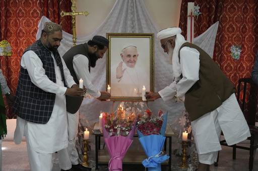 GRIEF AT THE VATICAN AND BEYOND The body of Pope Francis lies in an open casket as cardinals hold the rite of the declaration of death in Santa Marta residence at the Vatican on April 21. Elsewhere across the globe, the late Pontiff is honored in solemn rituals like the procession held in Dili, Timor-Leste, and with shrines that draw acts of reverence even from non-Christians, like the Muslim clerics in Lahore, Pakistan). —REUTERS AND AP