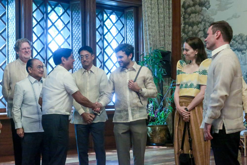 President Marcos on May 21 meets with the cast and crew of “The Last Resort,” including lead actors Daisy Ridley and Alden Ehrenreich, both famous for their appearances in the “Star Wars” series of movies. The upcoming rom-com, produced by Manuel V. Pangilinan (left) who joined this “meet and greet,” is about a career woman who finds new life and love while traveling to the Philippines. —PPA POOL