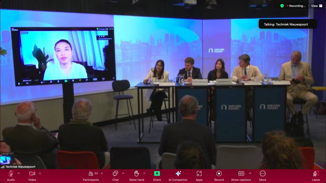 Human rights lawyer Kristina Conti, appearing via videoconference, recalls the harassment and intimidation she faced as counsel for drug war victims during Wednesday’s launching of “Black Robes, Red Targets,” a report on extrajudicial killings in the Philippines. Conti could not attend the launch also held at the Hague, as she is currently involved in the preparations for the trial of former President Rodrigo Duterte before the International Criminal Court (ICC), where she serves as a prosecutor in that case. Duterte is detained at the ICC for the charge of crimes against humanity of murder, in connection with his drug war. —SCREEN GRAB