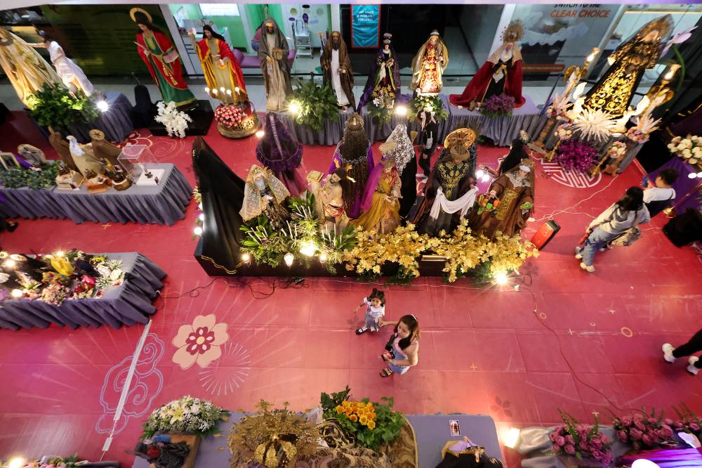 Mall goers look at the “Cuaresma” lenten exhibit of 60 religious images at Alimall in Araneta City, Cubao, Quezon City on Tuesday, March 5, 2024. INQUIRER PHOTO / GRIG C. MONTEGRANDE.