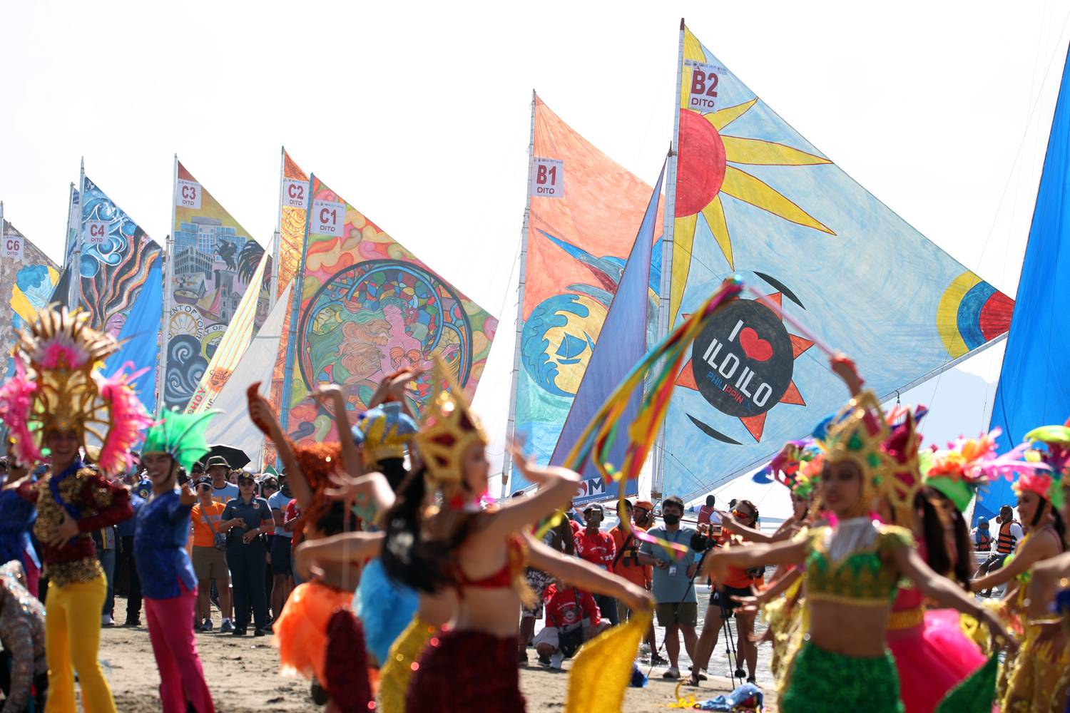 Colorful native outriggers race from the shoreline of Arevalo district Bay in Iloilo City during the start of the 51st Paraw Regatta Festival, March 3, 2024, the longest and biggest sailing competition in Southeast Asia. The race will cover a 30-kilometer course from Villa Beach in the Arevalo district to Guimaras Island and then back to Villa Beach. Initiated in 1973, the regatta honors the double outrigger boats, aiming to preserve the paraw as a crucial element of early Ilonggo history. INQUIRER PHOTO / NIÑO JESUS ORBETA.