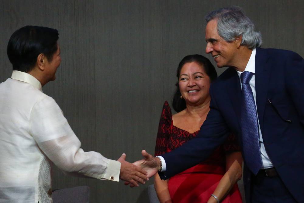 President Ferdinand R. Marcos Jr. and First Lady Louise Araneta-Marcos lead the unveiling of the marker of Victoria International Container Terminal (VICT) Phase 3 Expansion during its off-site inauguration at a hotel in Melbourne, Australia on Monday, Mar. 4, 2024. Joining them are Trade industry Secretary Alfredo Pascual , House Speaker Martin Romualdez, International Container Terminal Services Chairman Enrique K. Razon Jr. and VICT Executive Chairman Christian R. Gonzalez. (PPA POOL / NOEL B. PABALATE).