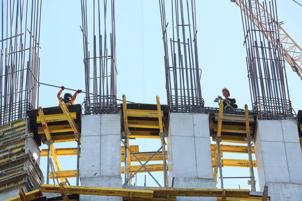 Laborers in a road project in Parañaque City continue their work on Sunday afternoon, April 28, amid the heat index recorded that day at the danger level of 43 degrees Celsius.