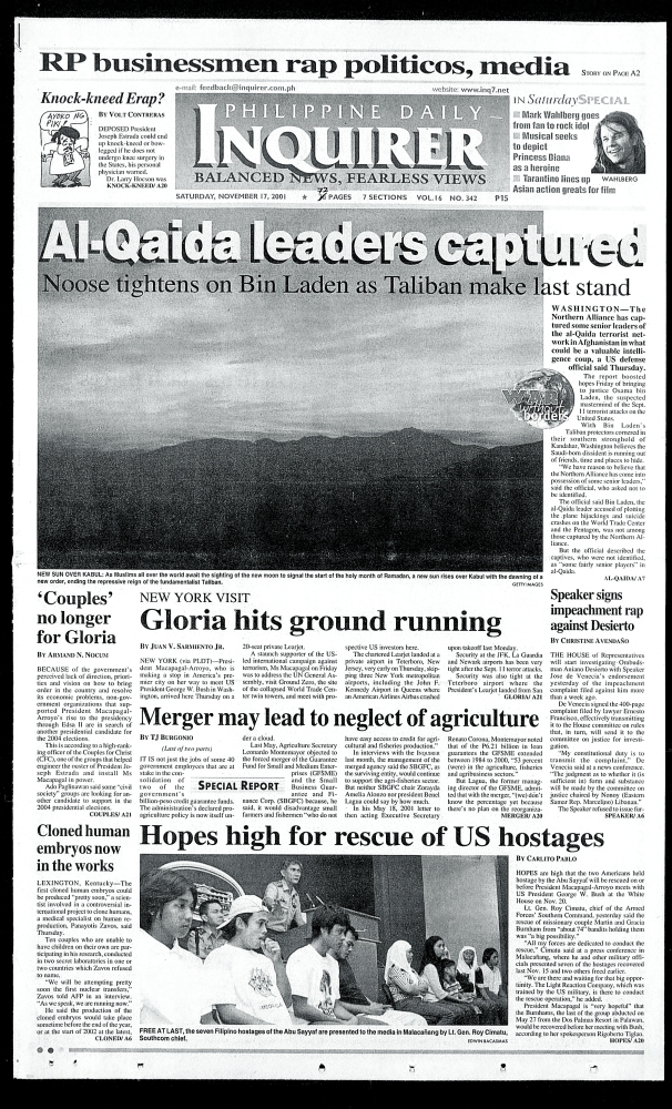 November 17, 2001: AI-Qaida leaders captured by Philippine Daily Inquirer November 17, 2024 November 17, 2001. 0 Comments