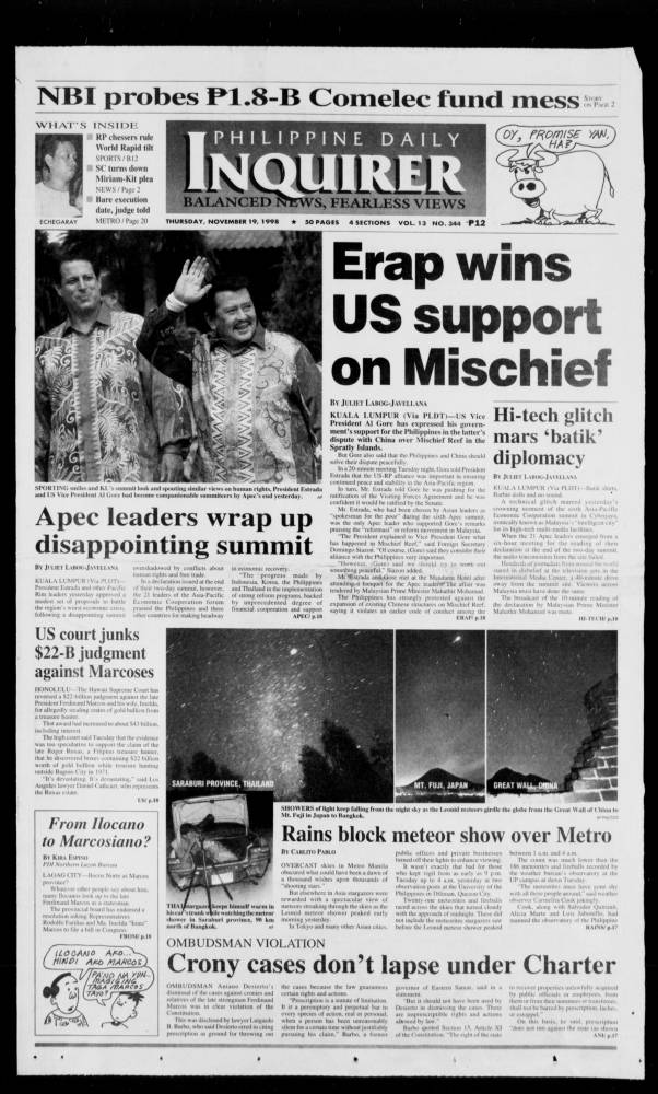 November 19, 1998: Erap wins US support on Mischief by Philippine Daily Inquirer November 19, 2024 0 Comments