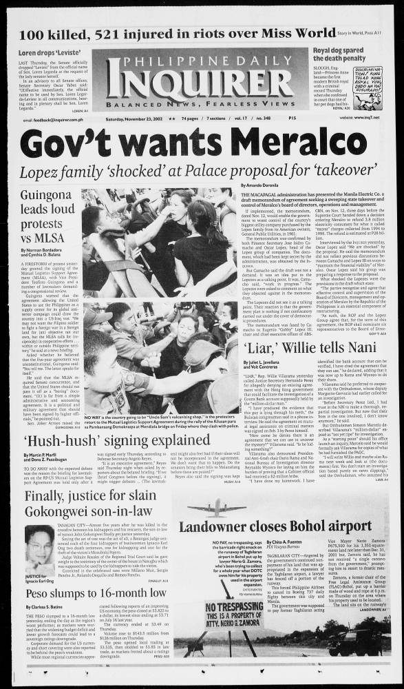 November 23, 2002: Gov’t wants Meralco by Philippine Daily Inquirer November 23, 2024 November 23, 2002. 0 Comments