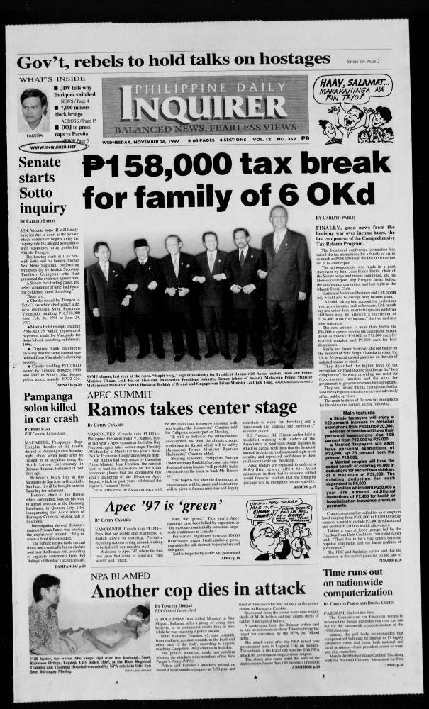 November 26, 1997: P158,000 tax break for family of 6 Okd by Philippine Daily Inquirer November 26, 2024 November 26, 1997. 0 Comments