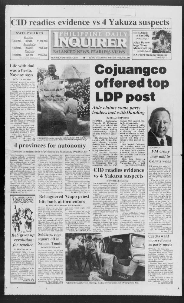 November 27, 1989: Cojuangco offered top LDP post by Philippine Daily Inquirer November 27, 2024 0 Comments