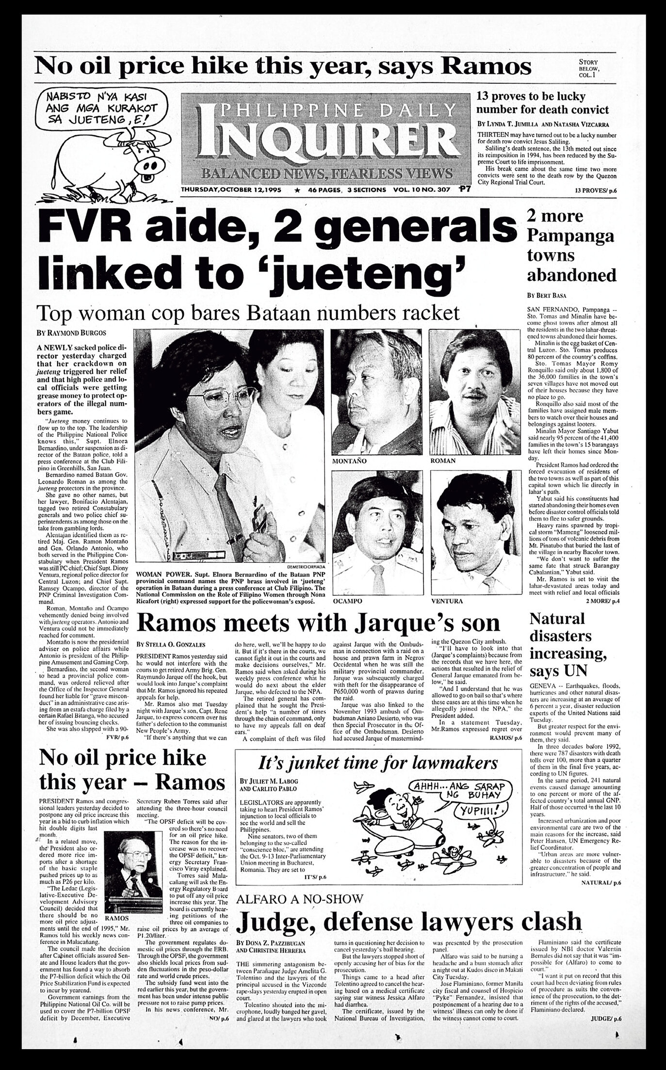 October 12, 1995: FVR aide, 2 generals linked to ‘jueteng’ by Philippine Daily Inquirer October 12, 2025 October 12, 1995