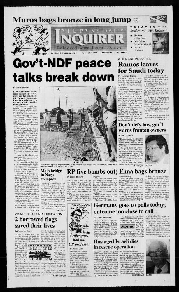 October 16, 1994: Gov’t-NDF peace talks break down by Philippine Daily Inquirer October 16, 2024 0 Comments