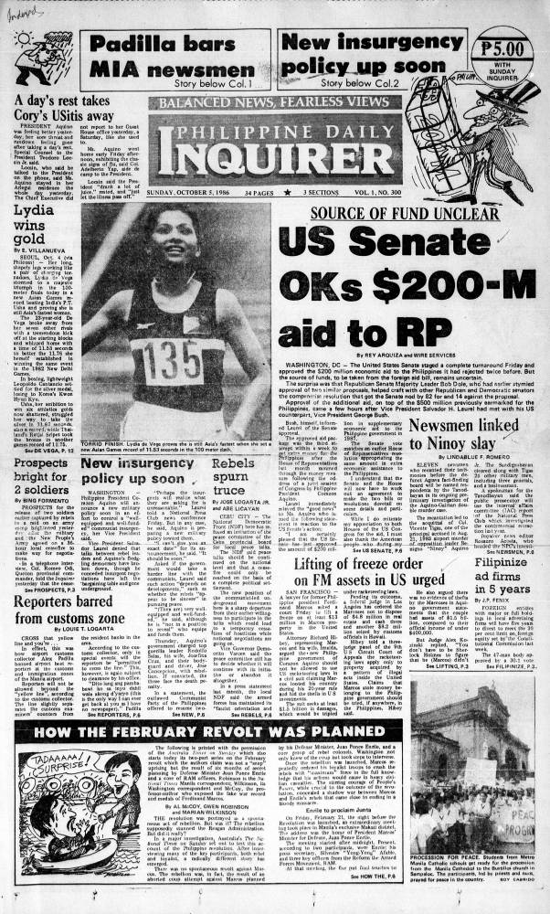 October 5, 1986: US Senate OKs $200-M aid to RP by Philippine Daily Inquirer October 5, 2025 October 5, 1986.