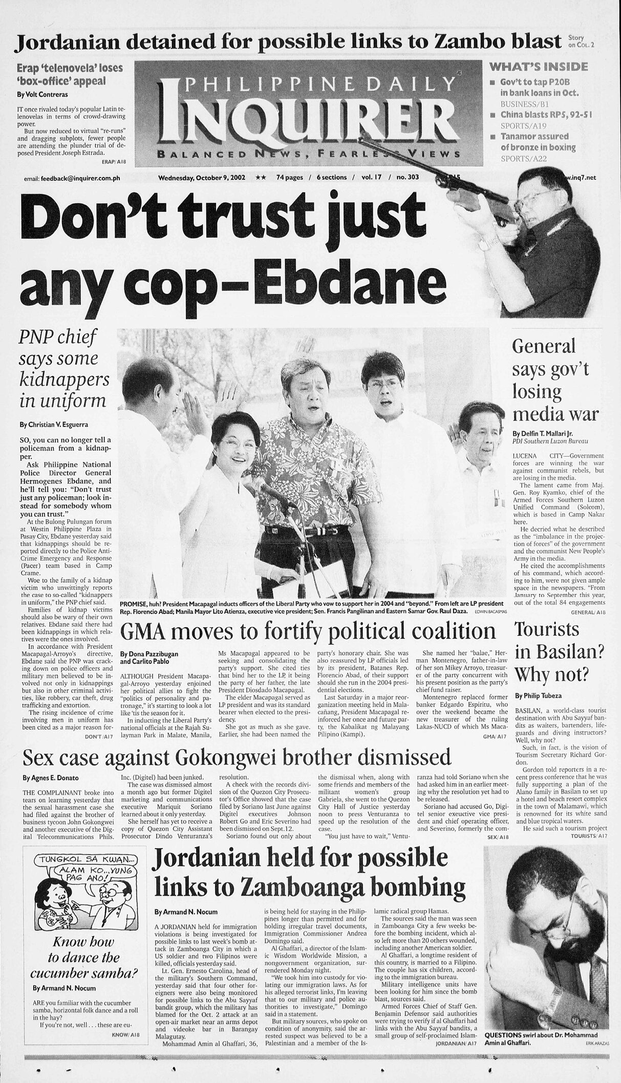 October 9, 2002: Don’t trust just any cop—Ebdane
