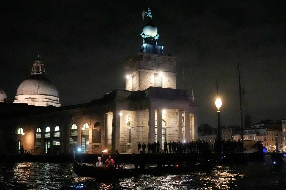 The flame arrived near dusk in Venice’s Piazzale Roma, the main bus terminal for people arriving in the city. It crossed the Ponte delle Guglie in Cannaregio en route to the arched Rialto Bridge, where it was loaded onto a boat to traverse the Grand Canal toward the wooden Accademia Bridge.