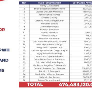 According to earlier media reports, Lipana’s wife, Marilou Laurio Lipana, serves as president and general manager of Olympus Mining and Builders Group, a company based in Pasig City.