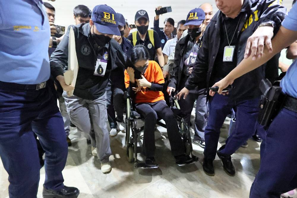 Both wore face masks and kept their heads bowed low as they were separately accompanied by aviation security officers and agents of the National Bureau of Investigation. From the Naia arrival area, they were whisked into a van that then brought them to the BI central office in Manila.