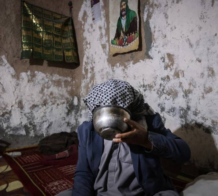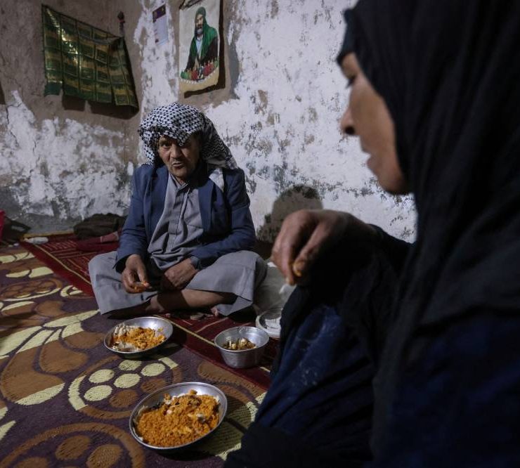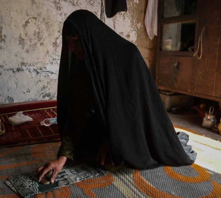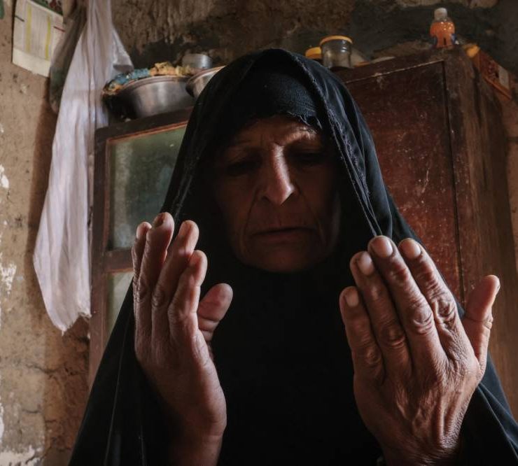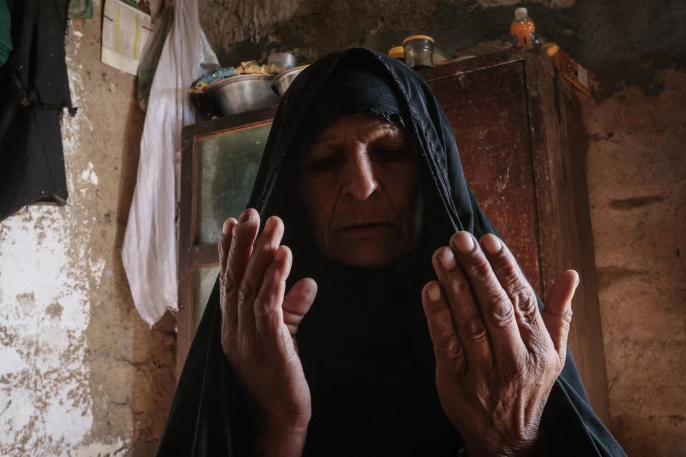 “My faith in God is keeping me strong and alive. Our life is difficult, but faith is stronger,” says Zahra, as she prepares to do her daily prayers in the couple’s shack in eastern Baghdad, which is decorated with wall hangings and depictions of holy imams.