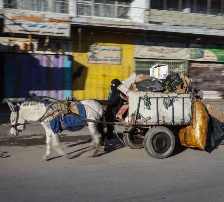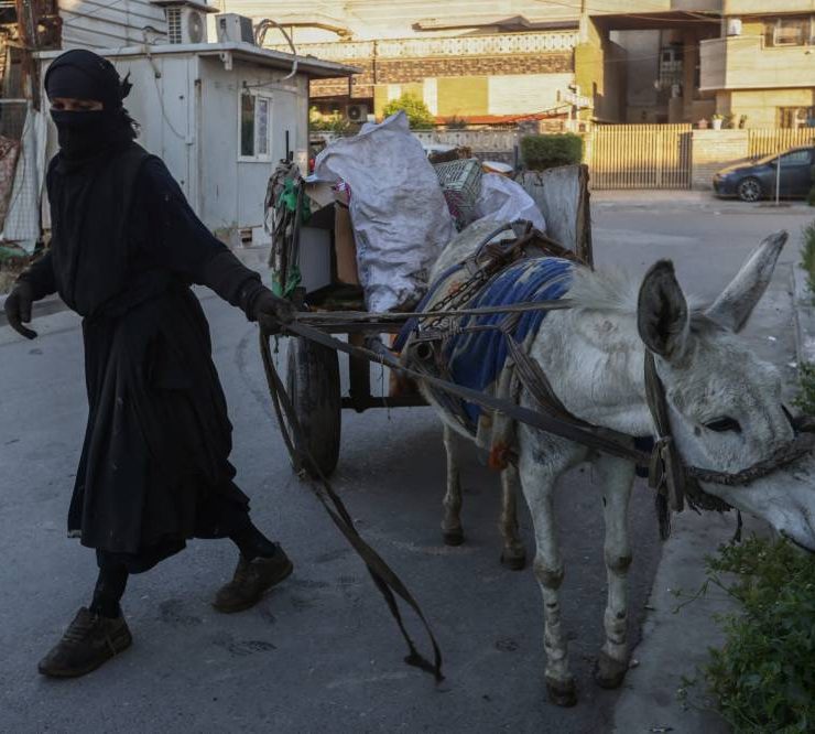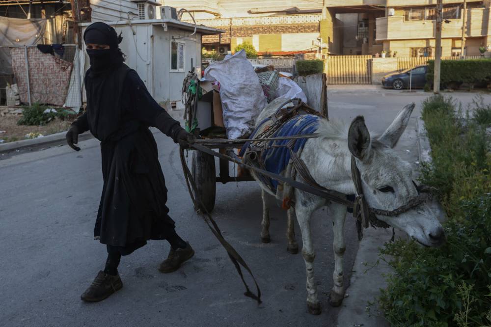 BAGHDAD—Every morning during Ramadan, Zahra Jouda Darraj rises early to take her donkey and cart to the garbage dumps of Baghdad, from where she can scavenge aluminum cans and glass bottles that she sells for a few Iraqi dinars.Wearing a black hijab and heavy gloves to pick through the garbage, she also collects discarded vegetables to cook later or for animal feed, piling them on her cart.