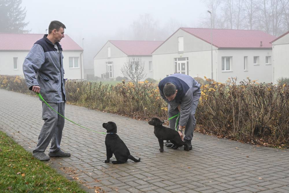 JIRICE, CZECH REPUBLIC—Serving their last year in prison, David Hejny and Marek Kolar have their work cut out as they train puppies Zeus and Zirkon to be assistance dogs for the visually impaired.