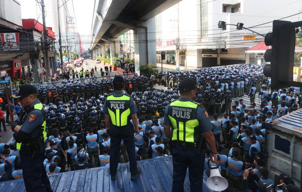 As thousands massed at the People Power Monument in Quezon City, organizers of the Trillion Peso March 2.0 prohibited any call on the Armed Forces of the Philippines to withdraw support for the Marcos administration.