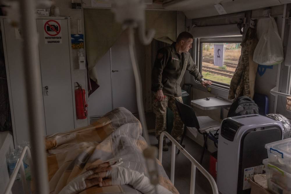 For Oleksandr, the army doctor overseeing the evacuation, there are clear benefits to rail: many people can be moved at once and it is safer than transporting wounded soldiers by helicopter, given Russian superiority in Ukraine’s airspace.