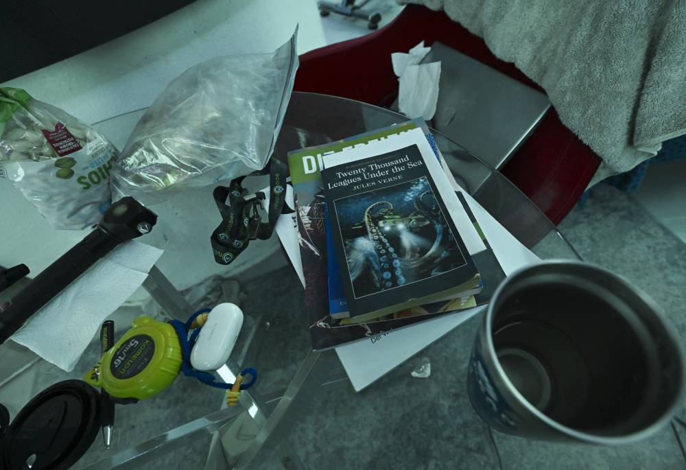 On a small bedside table lies Jules Verne’s “Twenty Thousand Leagues Under the Sea,” a 19th century sci-fi classic.