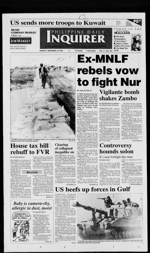 September 15, 1996: Ex-MNLF rebels vow to fight Nur by Philippine Daily Inquirer September 15, 2024 September 15, 1996. 0 Comments