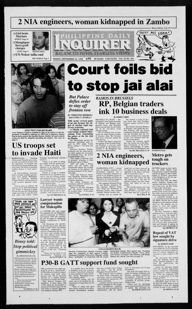 September 16, 1994: Court foils bid to stop jai alai by Philippine Daily Inquirer September 16, 2024 September 16, 1994. 0 Comments