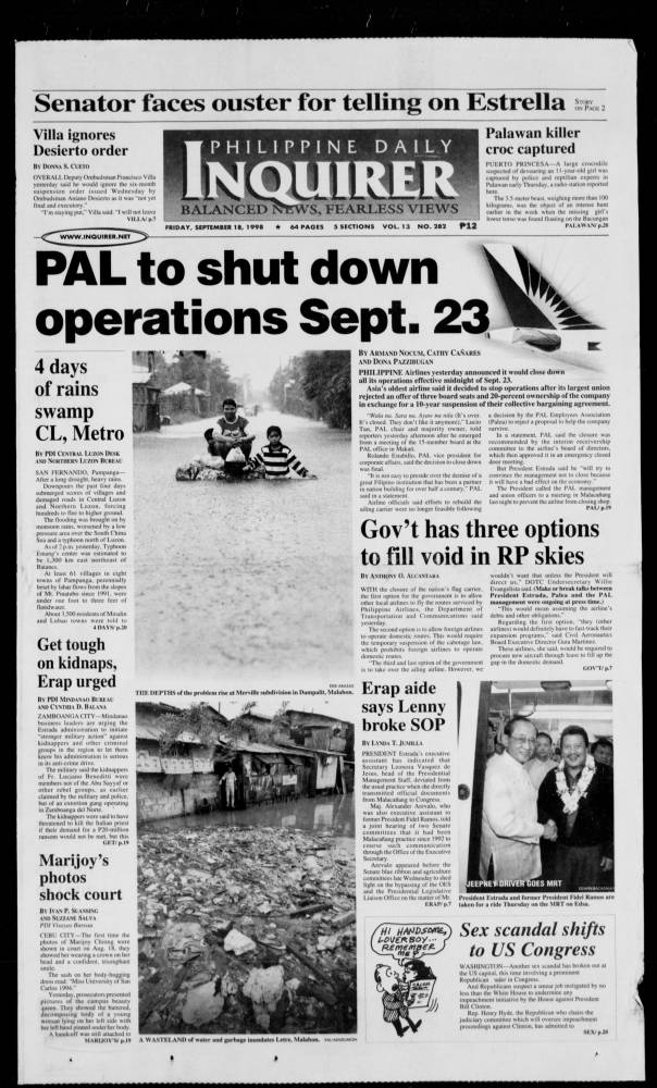 September 18, 1998: PAL to shut down operations Sept. 23 by Philippine Daily Inquirer September 18, 2024 September 18, 1998. 0 Comments