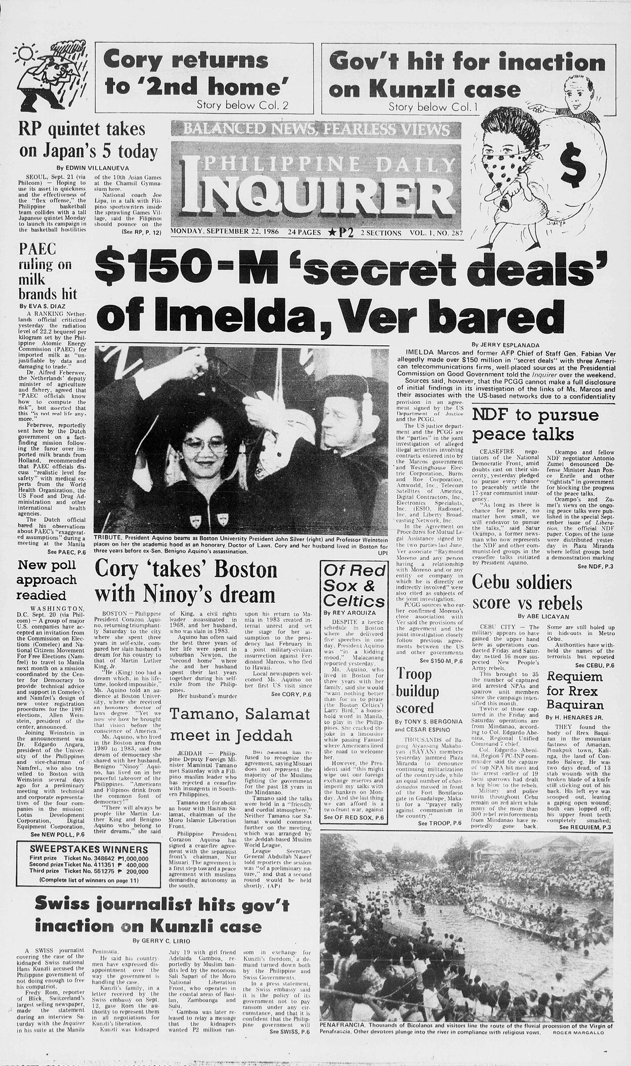 September 22, 1986: $150-M ‘secret deals’ of Imelda, Ver bared by Philippine Daily Inquirer September 22, 2025