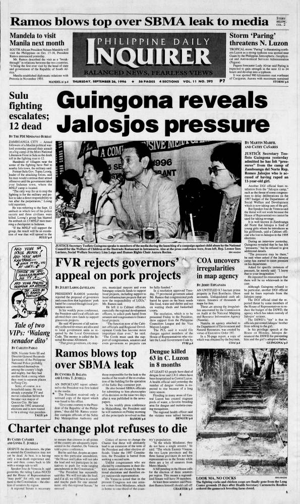September 26, 1996: Guingona reveals Jalosjos pressure by Philippine Daily Inquirer September 26, 2025 September 26, 1996.