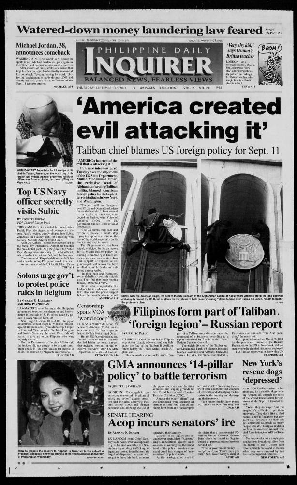 September 27, 2001: ‘America created evil attacking it’ by Philippine Daily Inquirer September 27, 2024 September 27, 2001. 0 Comments