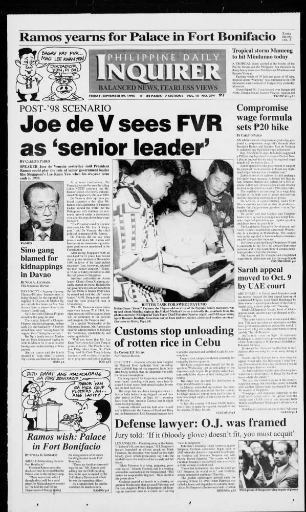 September 29, 1995: Joe de V sees FVR as ‘senior leader’