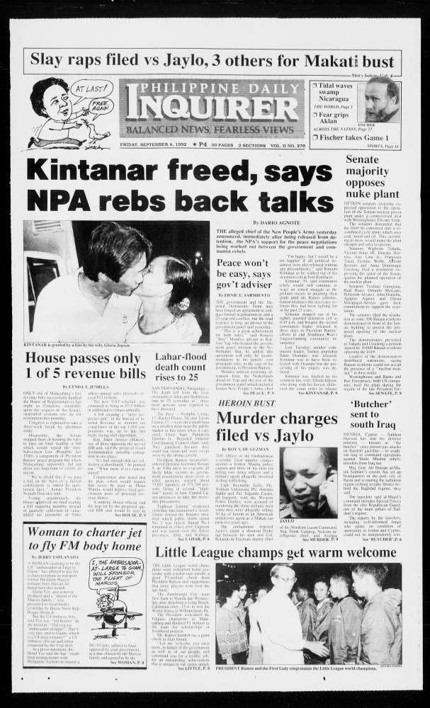 September 4, 1992: Kintanar freed, says NPA rebs back talks by Philippine Daily Inquirer September 4, 2024 September 4, 1992. 0 Comments