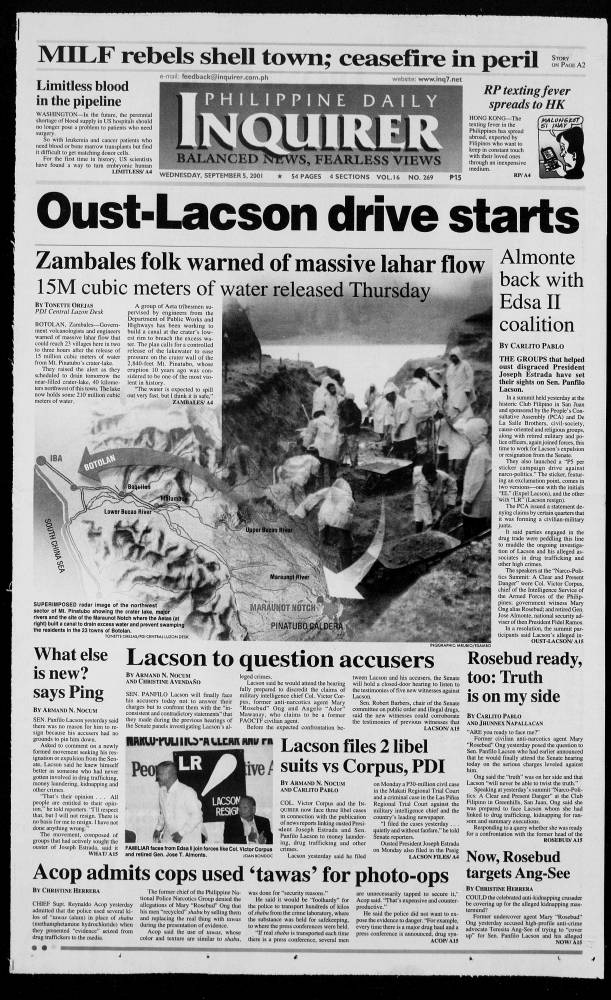 September 5, 2001: Oust-Lacson drive starts by Philippine Daily Inquirer September 5, 2024 September 5, 2001. 0 Comments