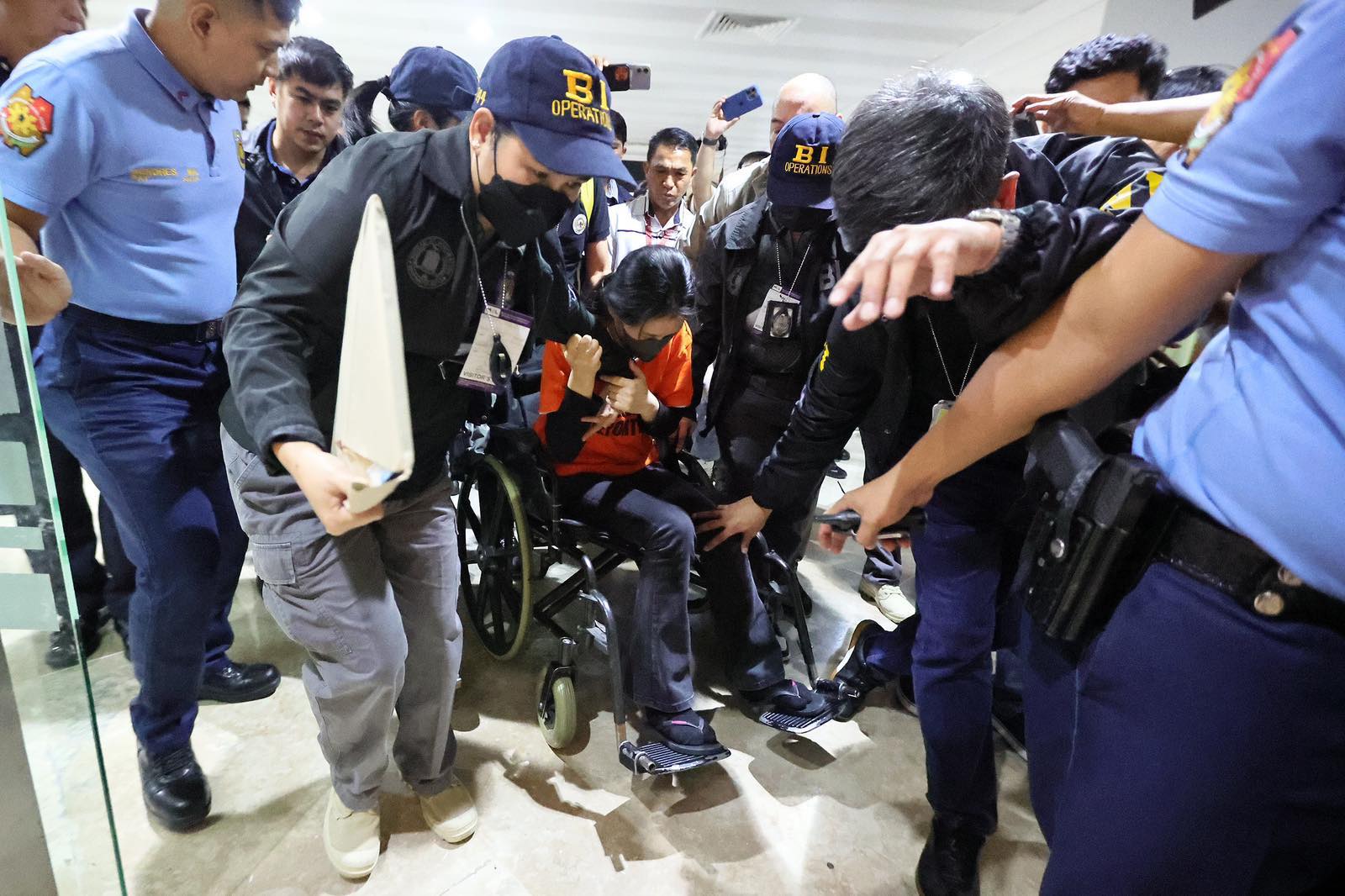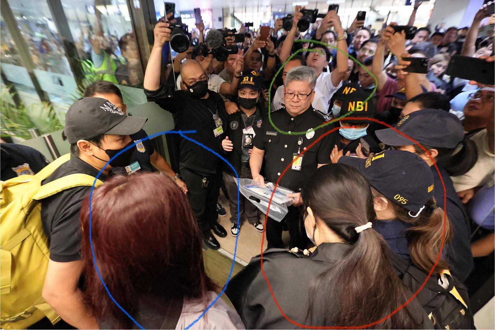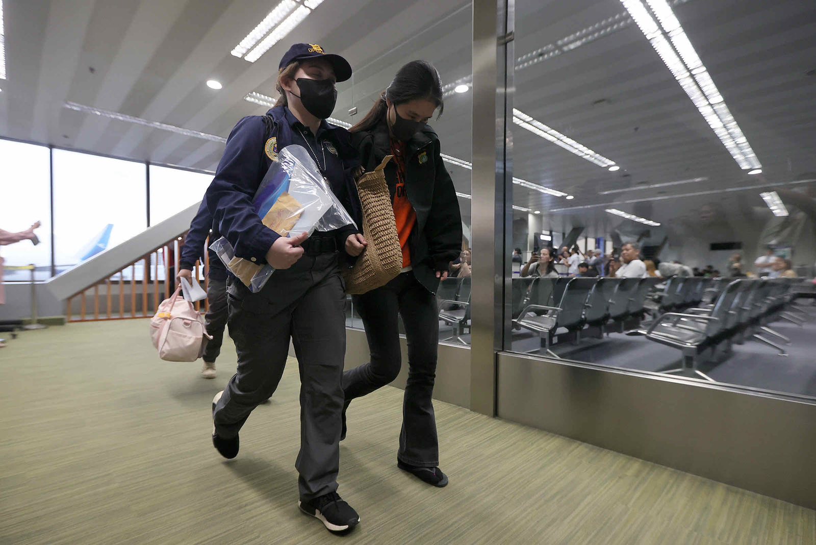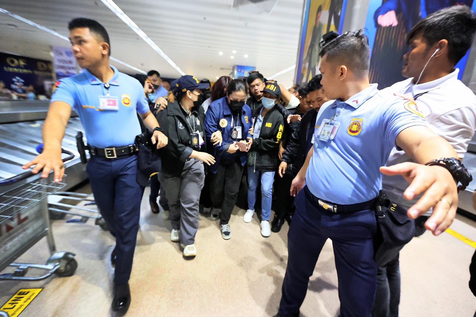 Wearing face masks and keeping their heads bowed low, they were separately escorted by aviation security officers and agents of the National Bureau of Investigation as they were whisked into a van that then brought them to the Bureau of Immigration’s (BI) central office in Manila.